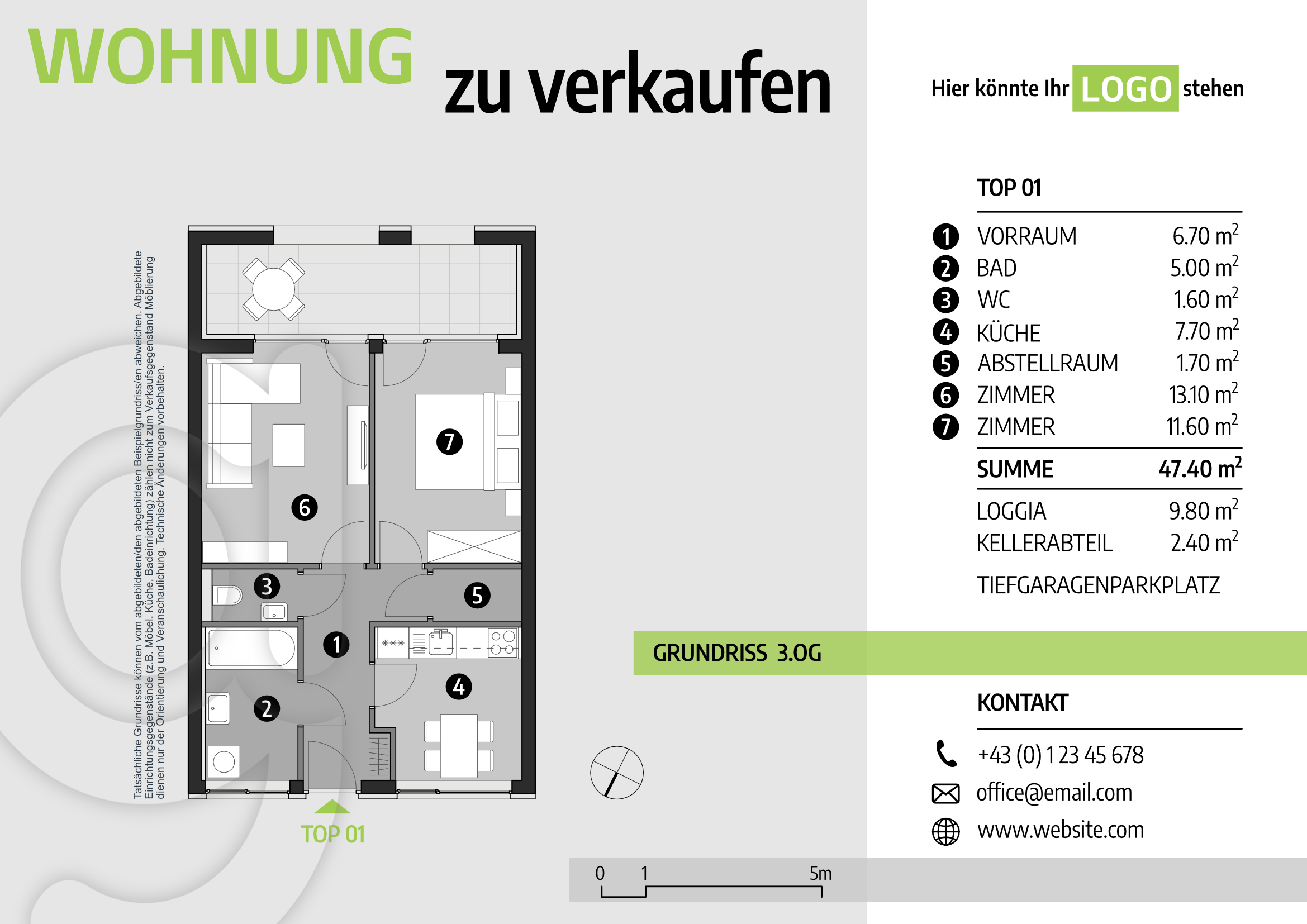 We feel that a detailed floor plan is the core component of any property brochure. After all, a scale drawing, the size and layout of the rooms, the facing direction, and virtual furnishing are all crucial factors that enable potential buyers and tenants to visualise your property as a lived-in home. Of course, your property brochure must also feature meaningful photos, a detailed description of the location, condition and fixtures and fittings.